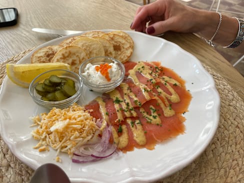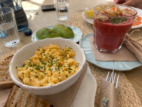 10/10Nice terrace, great menu and friebdly girls serving us. The menu has been updated. We had scambled eggs on toast with a side of avocado, salmon with blinis and banana bread to make sure we were fully satisfied 😄