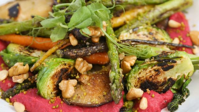 - Quinoa-based, with beetroot hummus, labneh, tomato, cucumber, green leaves, zahtar and tahini sauce