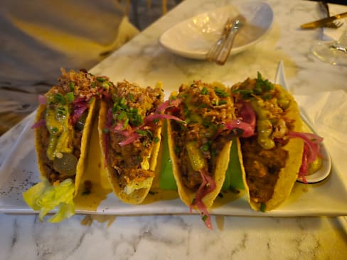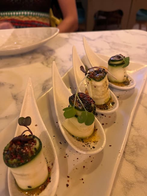 6/10The vibe, the service, and the ambiance is incredible. The food is just terrible. It look beautiful but tastes like a chef who’s trying too experiment way too much. The flavors were so weird and unappetizing. We had to cancel the rest of our order and leave because the taste of one of our plates was so bizarre. 10/10 on effort, service, and vibe. Unfortunately it’s a 2/10 on taste.