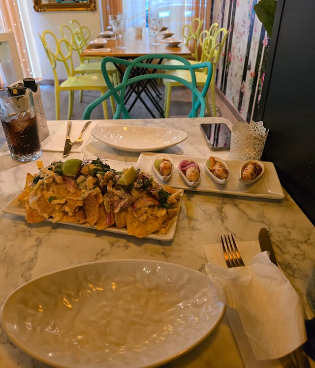 7.5/10Food and price are good. The menus is an issue. Is a QR code and there is no internet in the place. As a consequence you must share a IPad from the waiter to see the menu. On top of this they invent The dishes names so you might st go to another level to find out what are Chotis for instance. Being two people we need almost 20 minute to see menu and made our choices. To much complicated without a clar reason. It’s fine to innovate but would be great T have a normal tangible menu just in case the digital approach does not work.
