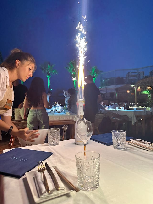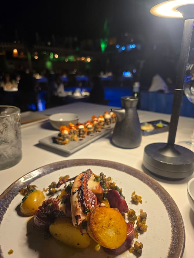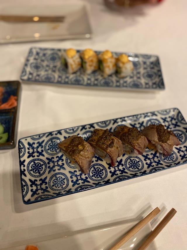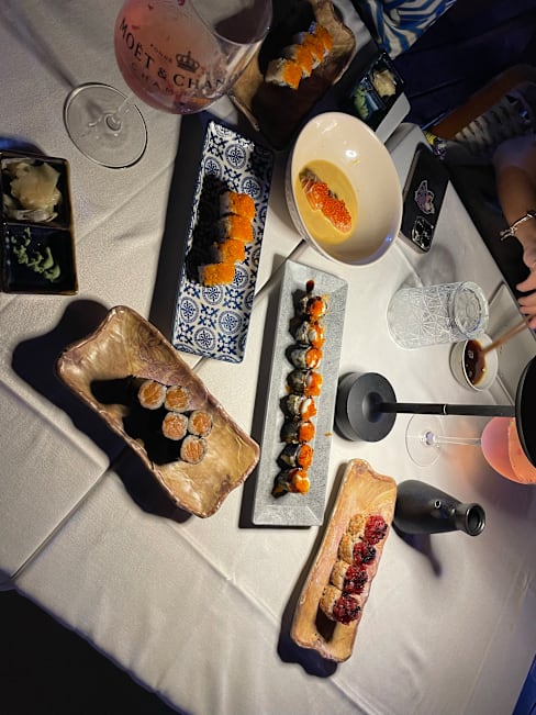 10/10+5Sushi with excellent quality! The red fruit sangria was divine and the chocolate brownie and Pistaccio dessert were divine. We were positively surprised that there was so much entertainment going on: live DJ, violinist, saxophonist, belly dancers, fire eaters, sparklers!! It was extremely entertaining and made it a very memorable and fun night!