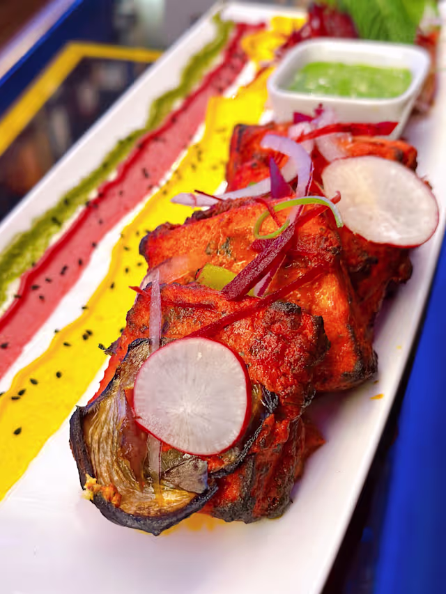 - Srukjes vis die worden gemaineerd en vervolgens gegrild over een tandoor