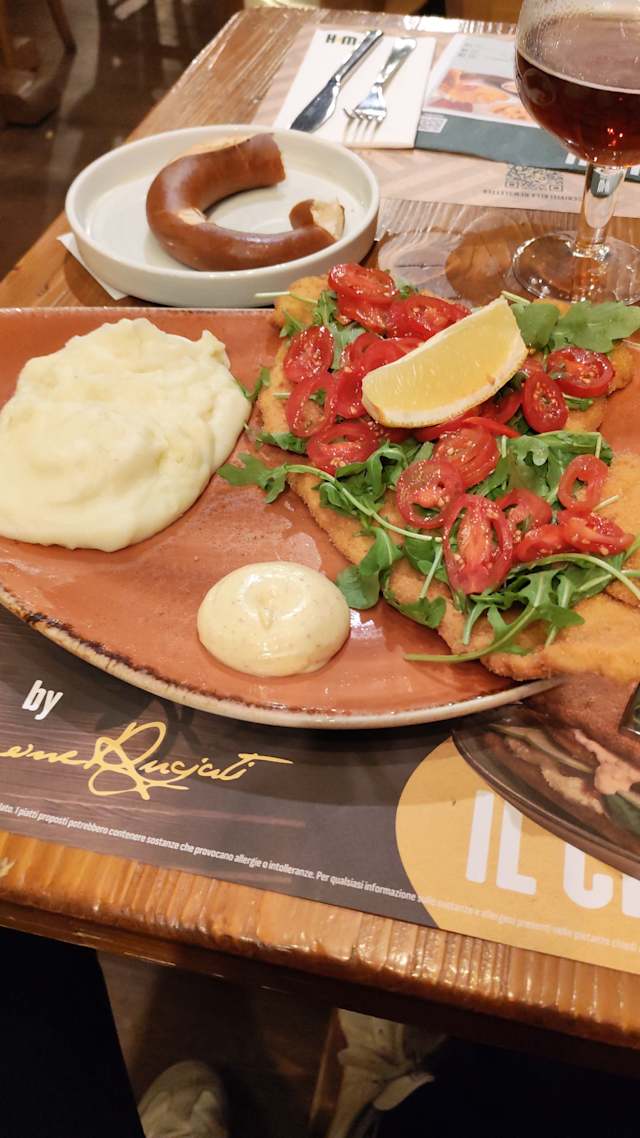 - Spatzle* agli spinaci con salsa al gorgonzola, speck e noci, mini ljubljanska (cotoletta di tacchino* panata farcita con prosciutto cotto praga e formaggio gouda) e patate al forno