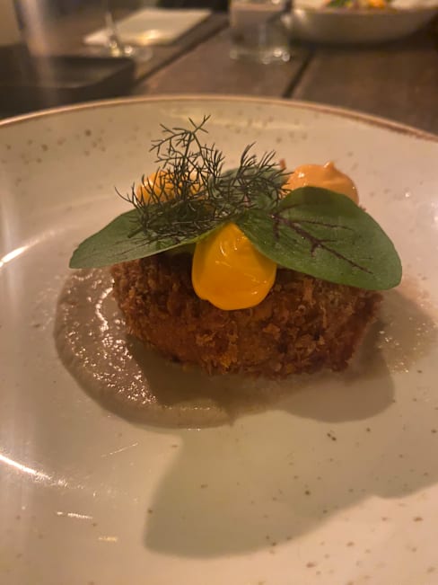 6/10mixed thoughts: it seems the place can do better, I might have not the luckiest experience I've ordered two sets of three dishes for three people to share, after consultation with the waiter – there should've been two various selections with meat/fish difference for the main course in the end, we each received three of the same courses and got billed for three, although that wasn't the agreement the food itself was pretty interesting, though I expected a bit more: the venison was a bit dry, for example; my friend didn't like the first raw fish appetizer at all and it got changed quickly, that was good you're not being told what is included in the set: you learn as the dishes are served; the pauses between the dishes were too long, and sometimes we had the feeling the waiters forgot about us sitting in a corner the waiters explain the dishes when they serve them, but it's hard to keep track as there are many ingredients - it would be great to have a set list on the table for better understanding the place itself looks great and the atmosphere is lively, but our experience was not the best for the money paid