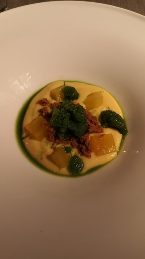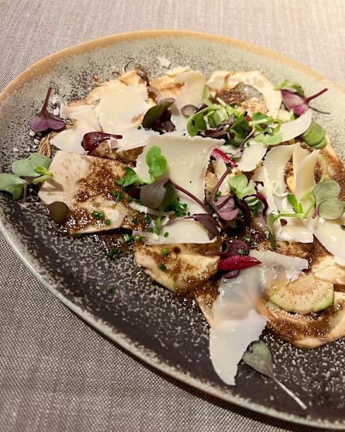 7.5/10The dinner arrived a bit too fast. A longer break than 7 min between the started and the main course would have been better :) The starter was delicious and the wine paring suggested was excellent.