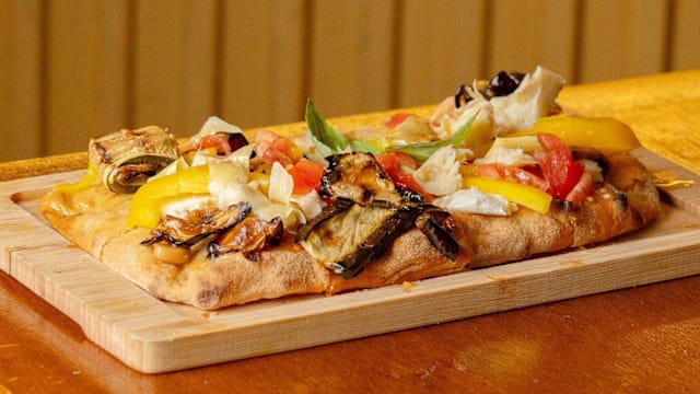 Tomato, arugula, mozzarella, eggplants, zucchini, bell peppers, sun-dried tomatoes