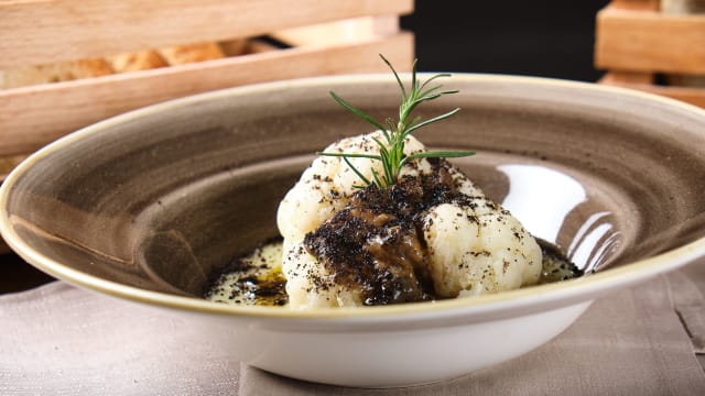 Gnocchetti di patate alla pescatora (calamari, cozze, mazzancolle) e gambero crudo
