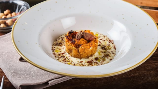 • croquette ripiena di patate, scamorza affumicata e zafferano al pz