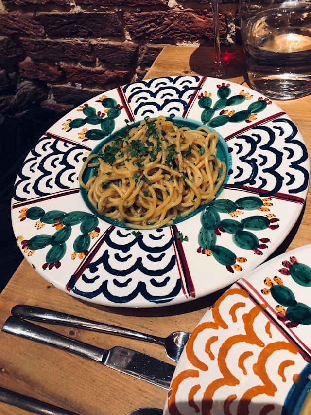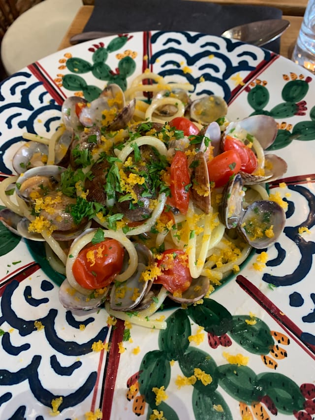3.5/10Food was mediocre at best. Our pasta was stuck, flavorless and a very small portion. It’s extremely overpriced and as if that wasn’t enough, the waiter shamed us for putting some cheese on the pasta to try to make it a little better, in front of other clients. Will absolutely not be coming back.