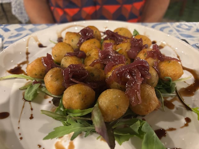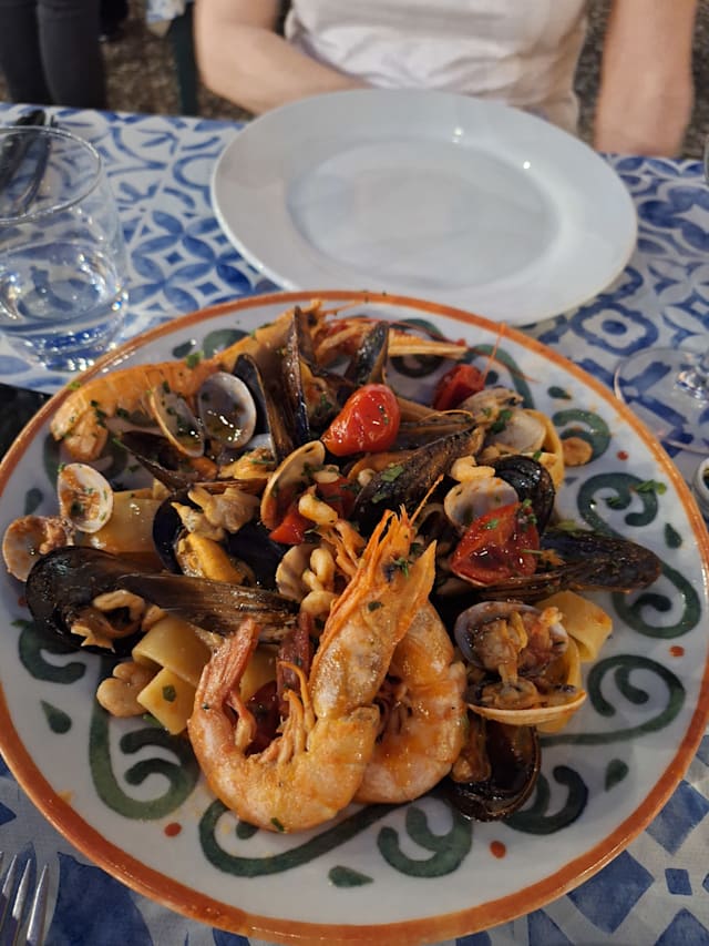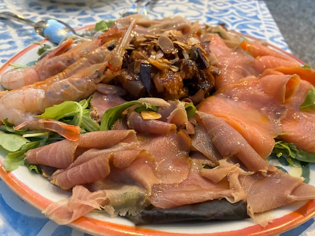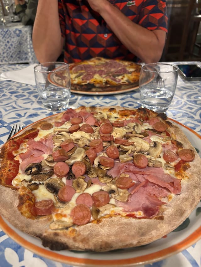 8/10Once identified we were English provided a UK menu and some helpful tips. Four Seasons Piza and Sea Urchins Linguine followed by Conola and Coffee were all very good and the service was friendly and efficient. Washed down with a good selection of wine, beer, spritz and liqueurs.