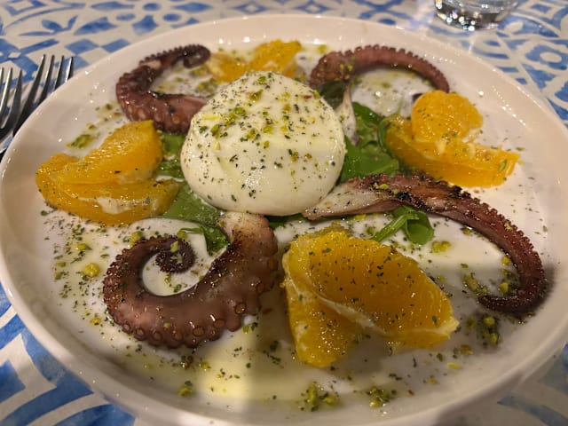 8/10Excellent local produced food sublime wine list of classic Sicilian wines. Service poor but the town had had a severe rain thunderstorm so not easy under the circumstances. Would definitely visit again and recommend