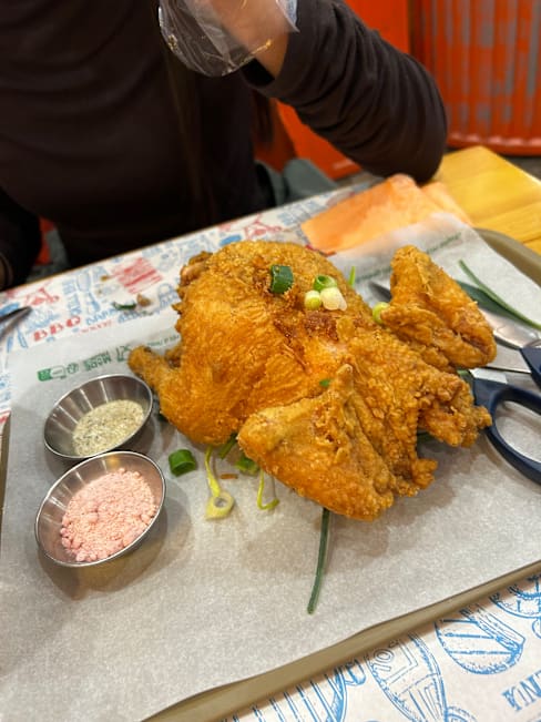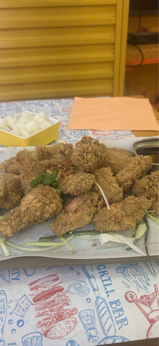 10/10Friendly staff. Spoke english. Chicken was delicious for sure! Get the honey mustard one if you can’t handle the spicy sauce. (Which was a bit spicy) but staff gave us fair warning ???? the yam fries could have been crispier… but the fried chicken and service trumps all!