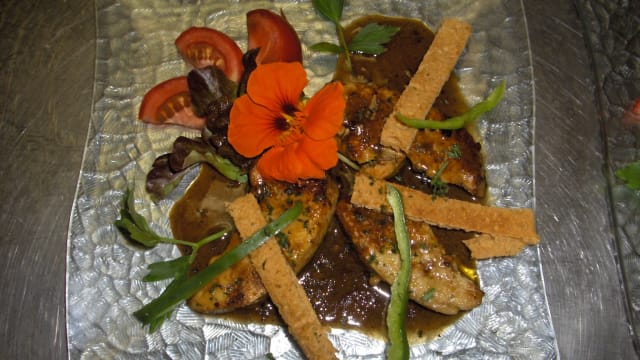 Dinde, champignons frais, oignon, crème accompagné de tagliatelles.
