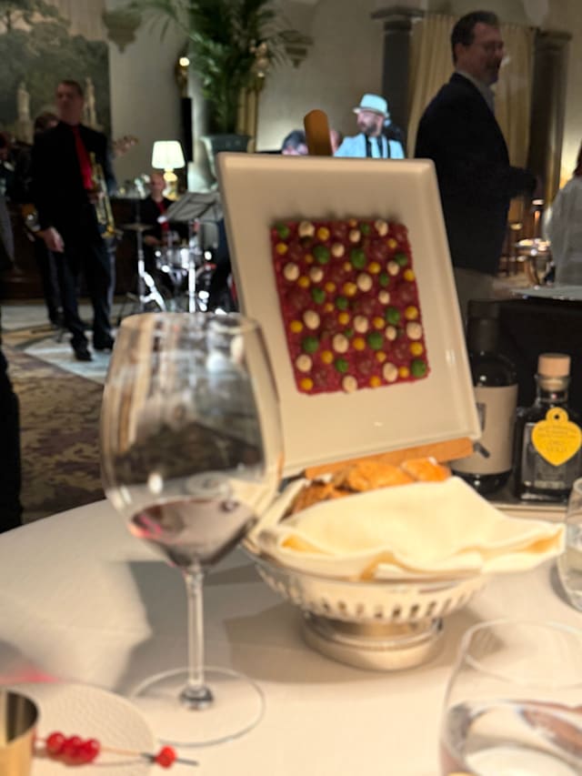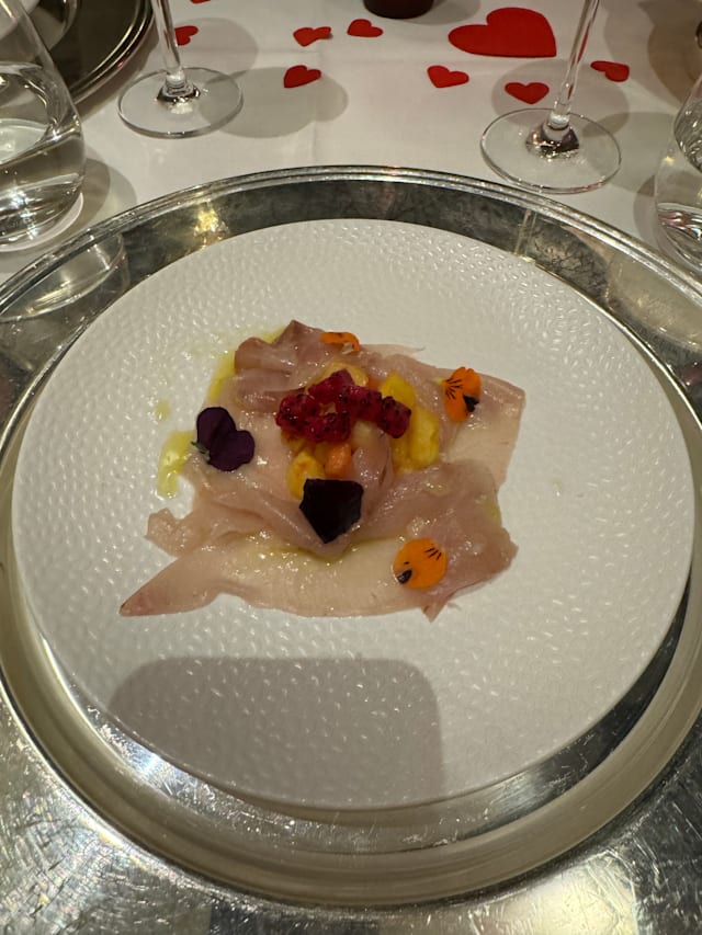 6.5/10Service was very proffecional and welcoming. The place itself is in a beautiful hotel (St Regis) in a historical building, not far away from historical attractions and still less busy, which was nice. The dining hall was festive ( all happening just after Christmas and NY) and gorgeous. Also we highly appreciate the presentation of the dishes ( we took one testing menu and some a la cart. The taste of the food was simplier than we would expect however: A bit dry for our taste chiken and fish. Desert was good. Also, music was laud from time to time. So the overall feeling was that for the price we paid there could be better options in Florence.
