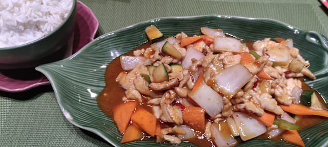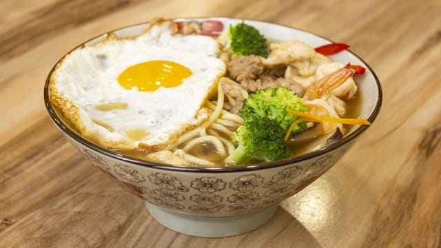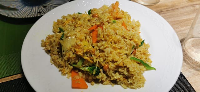 5/10Sunday evening so fairly quiet We were in the restaurant area with nice classical background music drowned out by noisy Spanish tv from the bar (also empty). Pad Thai and rice dishes ok. Sushi edi roll very good.