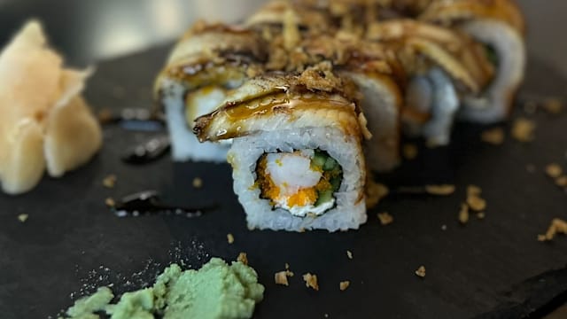 Shiitake wave, philadelphia, california with shrimp, unagi touch, cheese garlic, wakame salad (40 pieces)