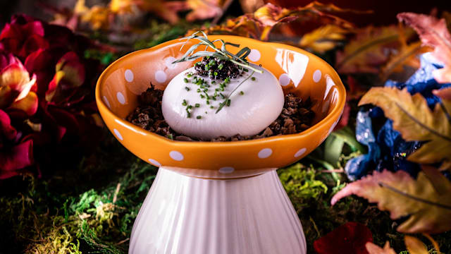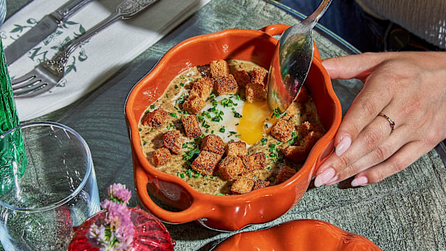 Mushroom velouté, organic slow-cooked egg, fresh herbs & golden croutons.