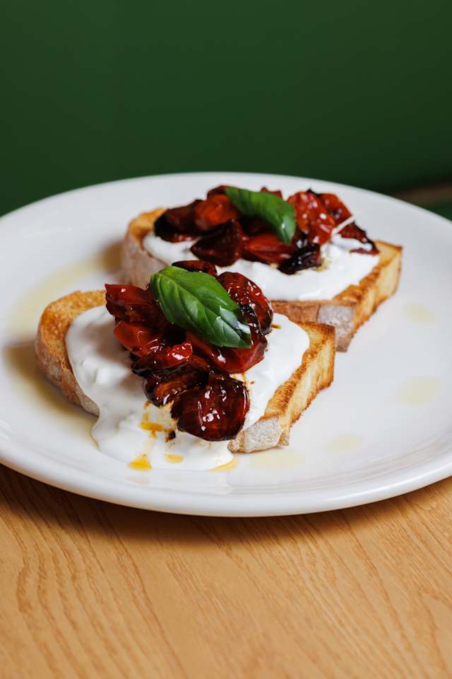 - Pane tostato croccante, stracciatella fresca e pomodorini confit fatti da noi