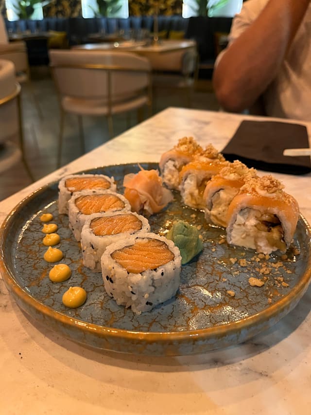 9.5/10Great addition to Faro s restaurants Location easy to find, interior very nice. Modern and high end looks, gentle staff. Traditional cocktails, but also modern twists, I loved the Wasabi Martini( spicy!) Dishes then: they were quite original, we tried a bit of everything, made our own choice though the composed menus looked good as well. The hot sushi Philadelphia had a great taste! The taco was nice, but my advice would be to make this 2 mini-taco’s per portion, instead of 1 big, and spice it up a bit. Now the taste of salmon and avocado was too much of the same. The twist on the classic temaki with the crab was great, loved the topping, as much as the Shiromi’s as well. All together, a real good experience, we ll happily go back for more!