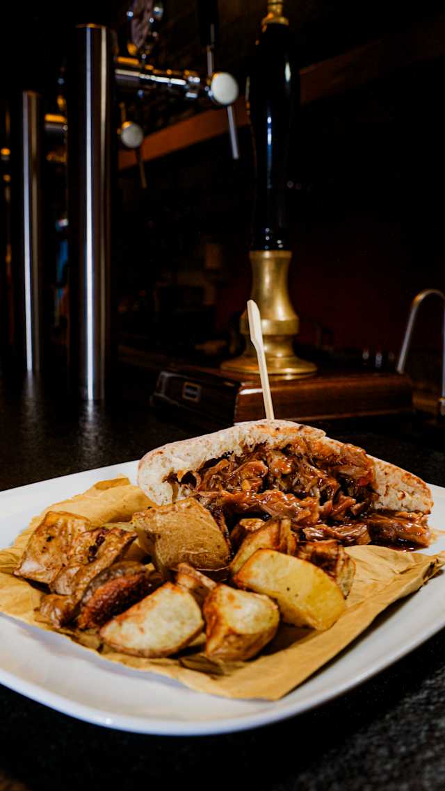 - Pulled pork, carote, cavolo rosso, senape e maionese. Accompagnati dalle nostre patate al forno