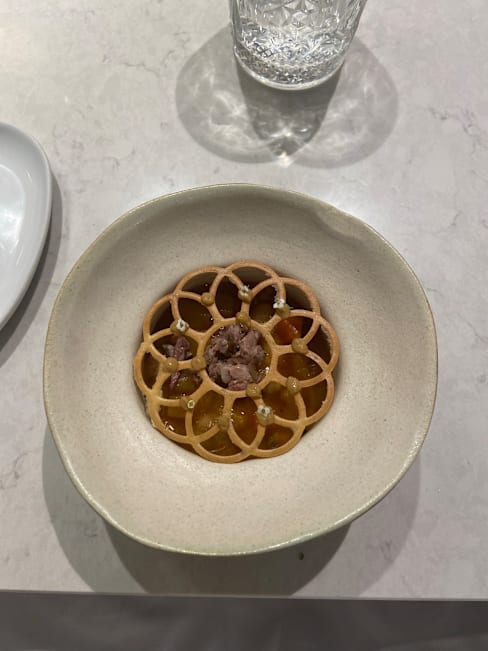 9.5/10An interesting and well curated menu, some dishes excelled and surprised. Service was excellent, friendly, and with good info about what we were eating on the tasting menu. There is a slight whiff of drains (on the whole street to be fair) which wasn't noticeable all the time