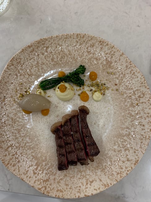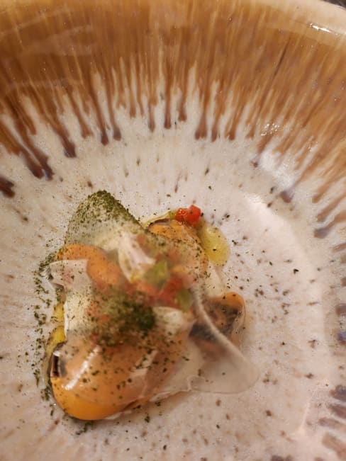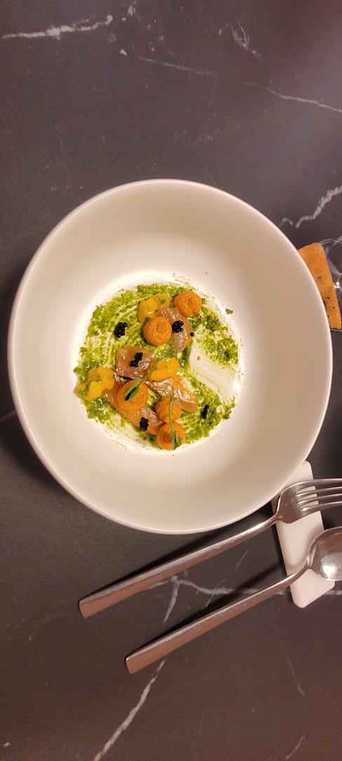 7/10Restaurant was easy tor find. A nice exterior appearance. The interior minimalist we think not appropriate to what we expect from a “ Michelin “. Table looks like a normal home table. We expected a flour, a candle, something on it….From our point of view it was important to had a short and beautiful presentation of the menu on a special paper! Food was well presented on the plates with a exception: the main course ( a maturated ) pork ) . With a good taste but hard to chew and the blood comes out when you cut. I did a effort to finish my wife portion. The service now. Under expectations. For example: serving over the table, noise when laying the plates, beer put in the glass with so much foam you have to wait in order to drink it,…In my opinion the stuff is not trained enough, and one maybe had not a school of servings in restaurants.