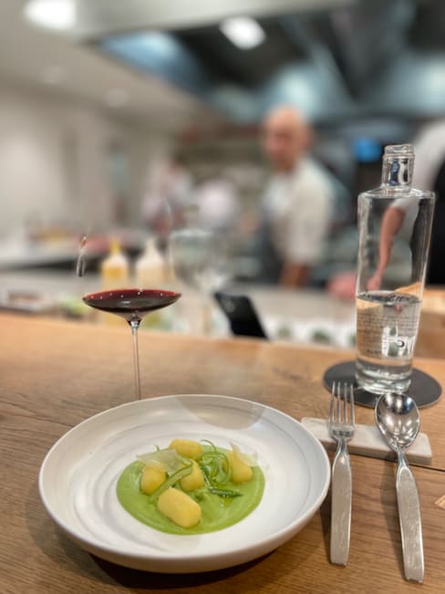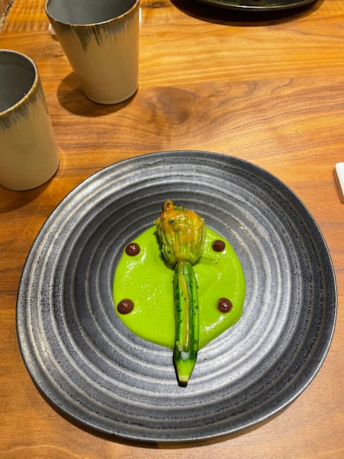 7/10We went there with the envy of an innovative and fresh vegetables cuisine proposition. Yet, most food served was lacking surprises, texture needs to be thought again (nearly all plates had some sort of puree making the plates often lacking croquant / crujiente, the food tasted "flat"/ "boring"). When ideas are well executed like the ajoblanco starter the quantities are too much. Desert were likely the main positive from a food perspective providing a fresh bitter sweet proposal to finish the meal. Service and wine service were both top notch. The chef needs to help his talented team delivering a more twisted and innovative food proposition. The overall experience deserves this to move to the next level. I will not come back without an evolution in the quality of the food proposal.