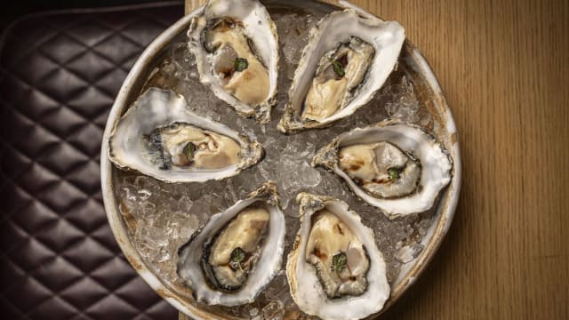 Ostra gillardeau nº2 soasada con crema de maiz al carbón (/ud)