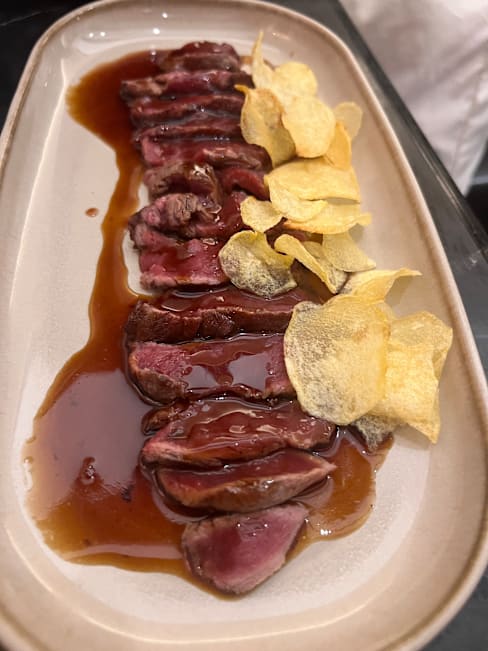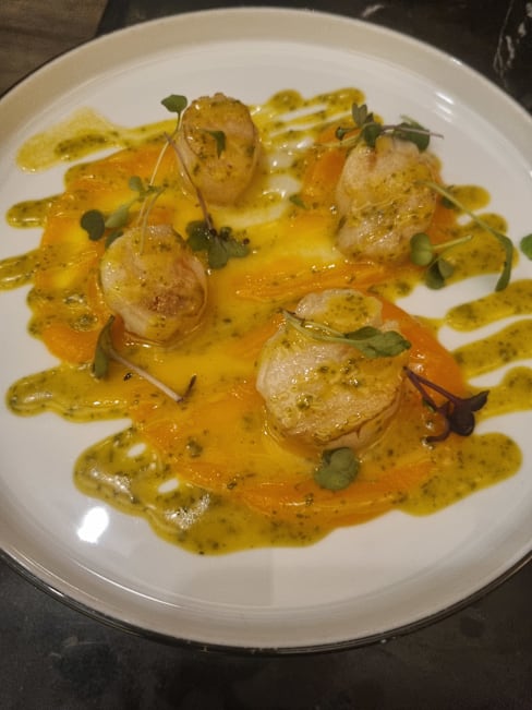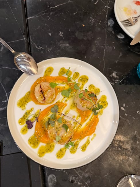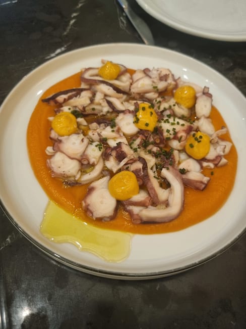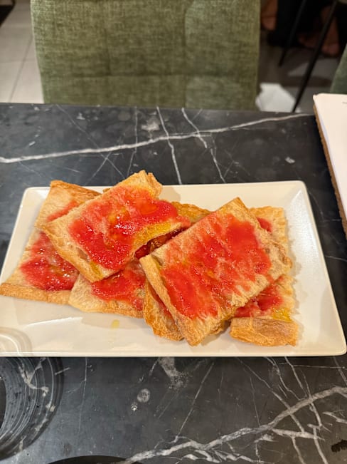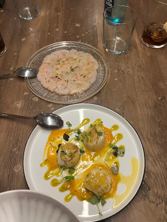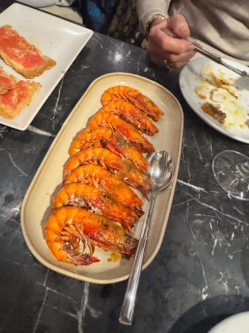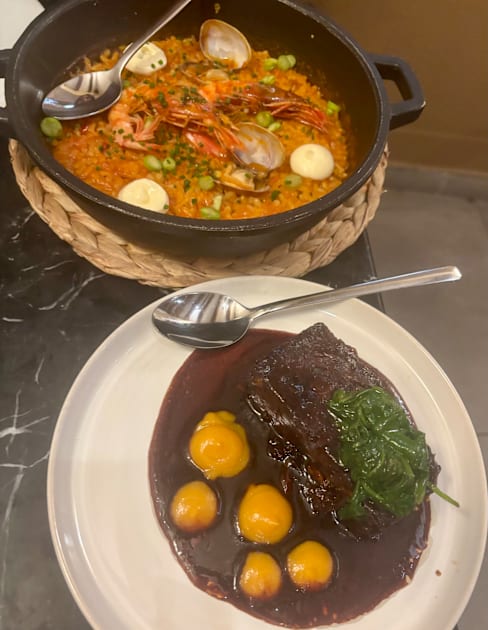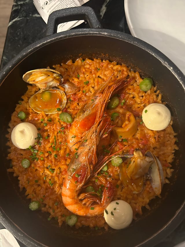 6.5/10For the price, the food did not meet expectations. Having tried it myself, I don’t understand the glowing reviews—this place unfortunately fell short. We ordered scallops, paella, duck, grilled prawns (not on the menu), and coca-cristal bread. The scallops were tender and nicely presented, but the sauce did little to enhance their flavor. The grilled prawns were decent but nothing worth noting. The duck started off well but had several pieces that were too chewy to enjoy. The paella was the biggest disappointment—bland rice with very little flavor, tasting like instant gumbo rice, which is disappointing to be served in a restaurant. Regarding the bread, it’s listed at €2.50 on the menu, but they charge per person which was not explained at time of order, and each portion consists of only 2-3 very thin, small slices. Overall, spending over €80 for this meal felt like poor value. There’s definite room for improvemen