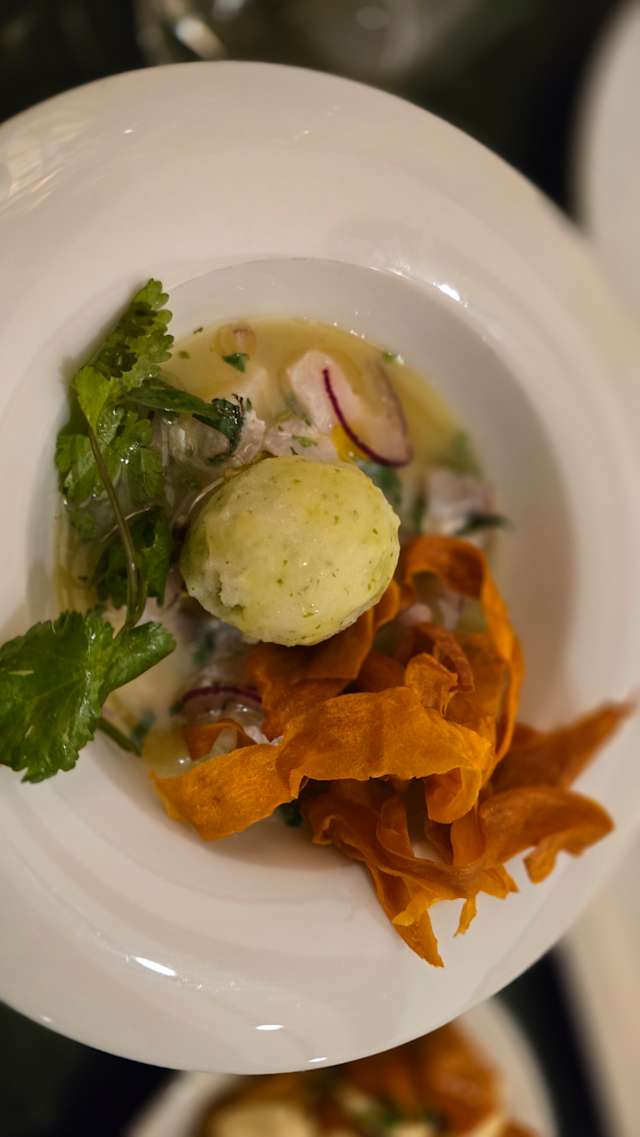 - Ceviche de corvina, leche de tigre, boniato,sorbete apio-lima