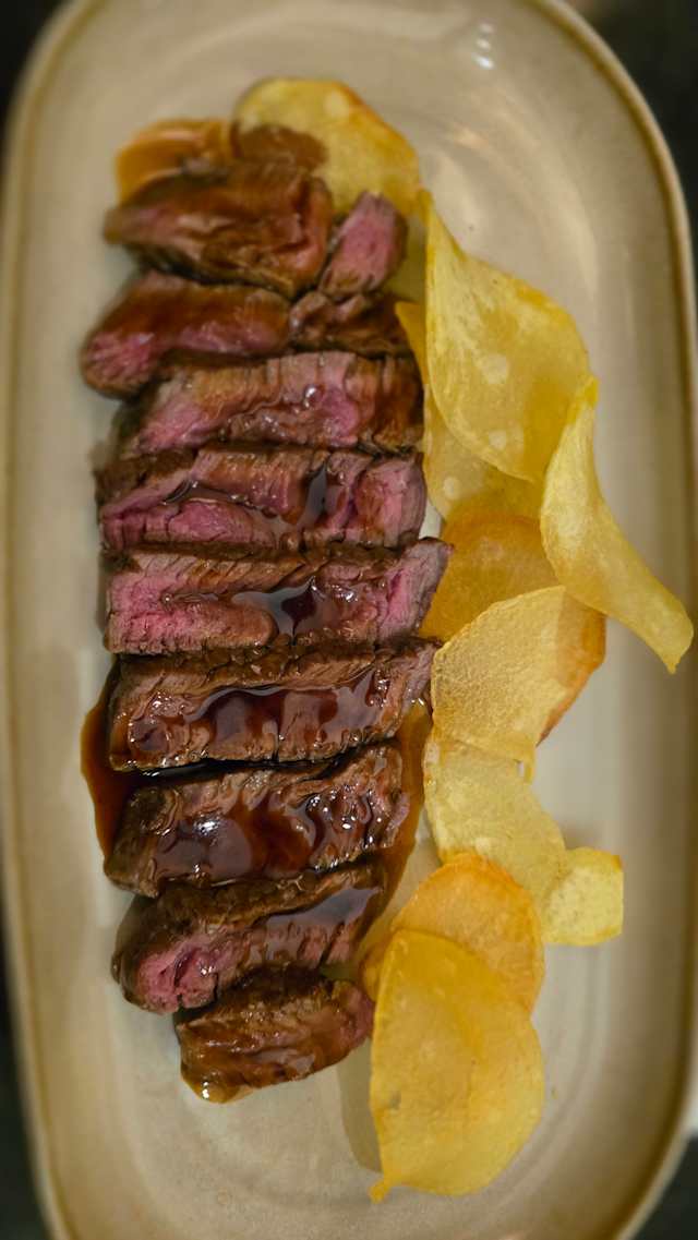 - Solomillo de ternera Frisona, salsa teriyaki, patatas chips