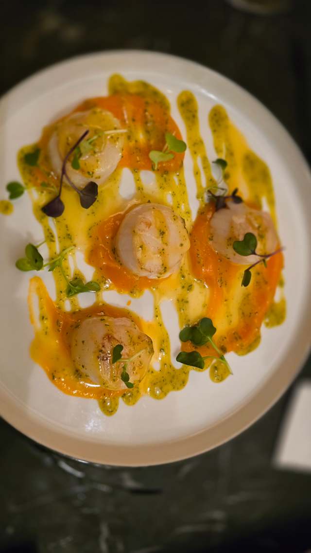 - Vieiras, textura de puerros, salsa mandarina & wasabi