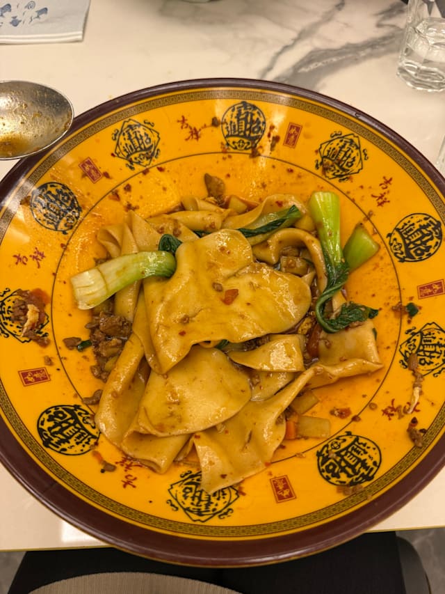 Pasta di biangbiang con intestino di maiale con olio piccante
