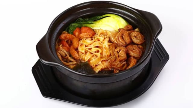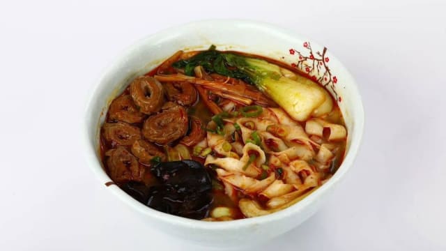 Tagliatelle brasate di qishan con salsa piccante in brodo