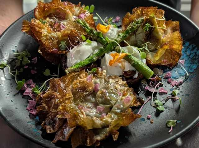 Glaseadas en salsa ponzu, crema de chirivía, espinacas baby y yogur