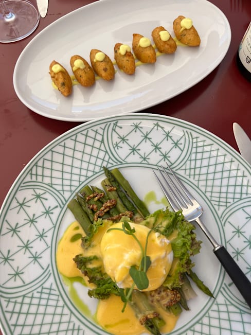 6/10The place is beautiful. Vegetable salad was nice like in the pictures, this was unfortunately the main joy of that lunch. We waited 50’ before receiving anything. Meat and fish then served without the sides requested and before the starters. We had fries that we had asked to replace by salad and veggies. The 35 euro medium rare meat dish was served overcooked, cold in a small plate and was … tiny. Quite limited menu and poor service while expensive ! Not a gastronomic stop as we hoped. Disappointing,