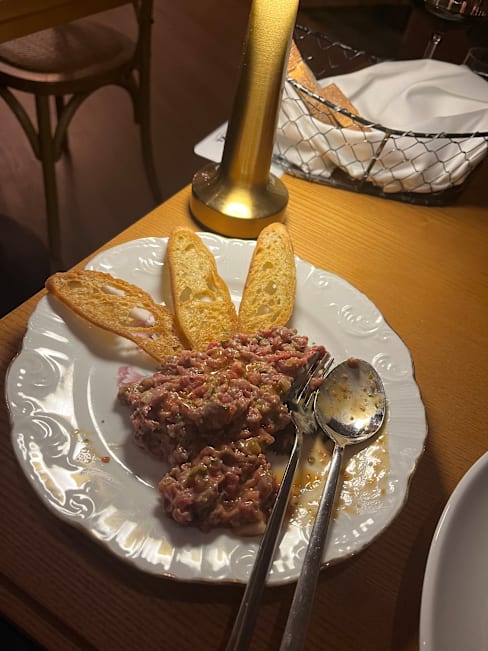 8/10Yet again the least expensive bottle of wine was not available, and no alternative at the price point was offered. The prices on the menu outside the restaurant were not the same as those presented on the menu at the table, 2 Euros more, Service was good, food plentiful and a good standard, although the cod was somewhat dry. On the night we were there, a Monday night, lamb had sold out on Sunday. Brits eating Sunday lunch?! no alternate lamb dish. Discount was offered and we were billed correctly.