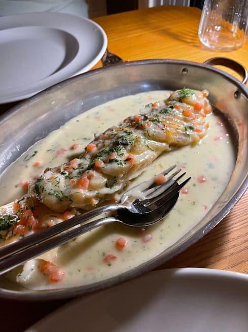 5.5/10Disastrous night. Service was very slow - I think understaffed. But biggest issue was that when mains arrived one was missing. So one of our guests had to wait for 15 mins for cod dish to arrive (despite being told 6 mins). When it arrived it was a huge chunk of Cod that had clearly not been cooked property and was impossible to cut through the middle (suspect it was microwaved). Sent it back. So one guest had no main - very awkward. They then exacerbated the issue by insisting we had free deserts even though we had all said no. They put a selection on the table which nobody wanted or touched. Ok they deducted some costs from bill - but completely spoil our enjoyment. Shall not return.