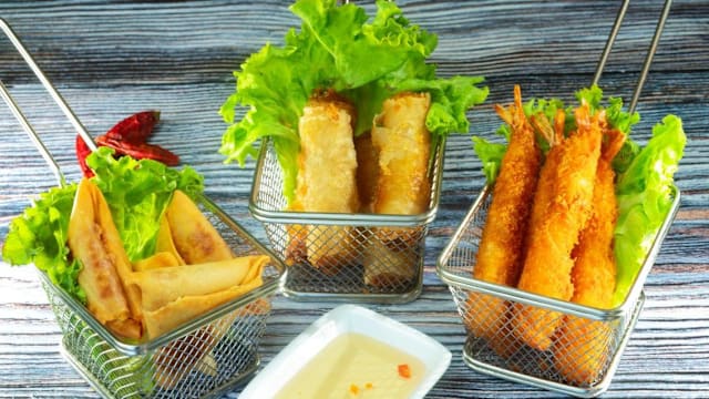 - Entrées (nems poulet 4pc) + nouilles sautées au choix + dessert