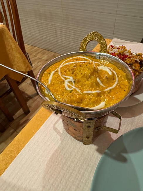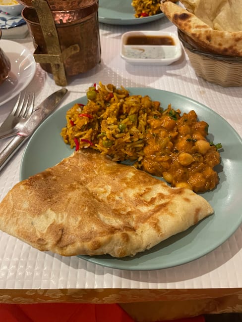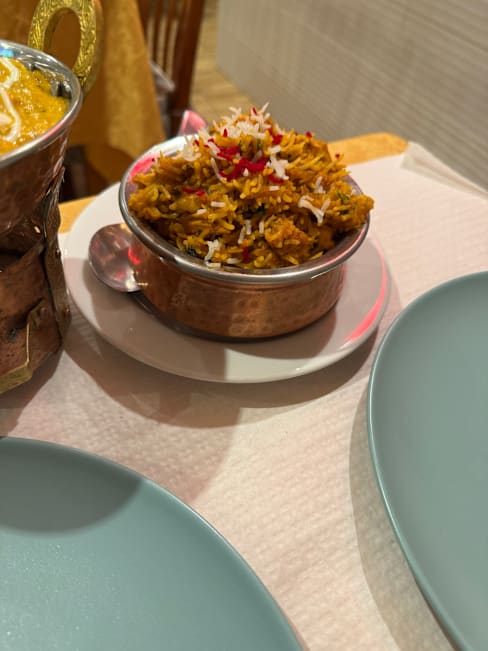 6.5/10Començe bem. Entradas, appetizers, were mostly good. Mushrooms 65 and amendoîm fritos were great. One of the samosa was hot, the other one was ice cold in the center. Fried rice was ok. Veg curry and veg masala did not use fresh veg, which is less than ok. It is not right to be served frozen or canned vegetables in a restaurant. The flavors were barely present. The tarkha dal was like water, with no flavor at all. I never waste food, but we ate a bit and left the rest for the trash. Sad because we were excited to try this place. No Portuguese spoken.