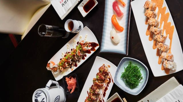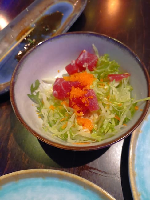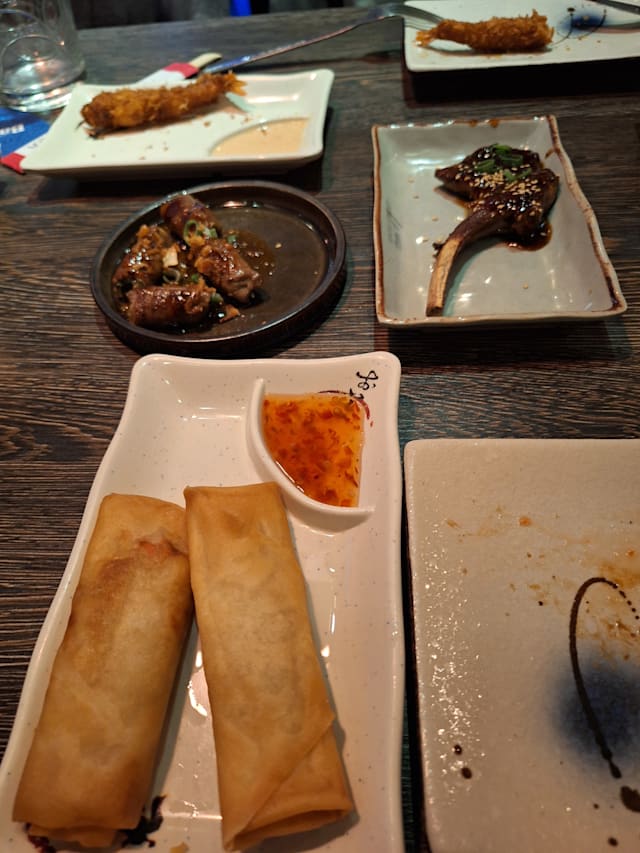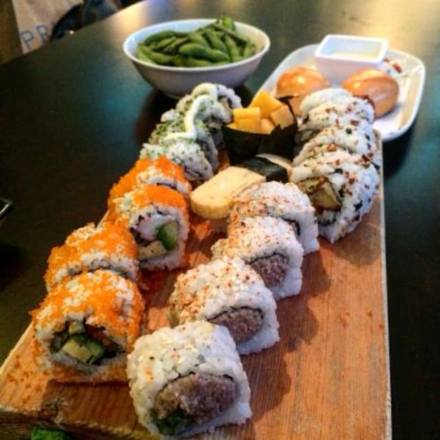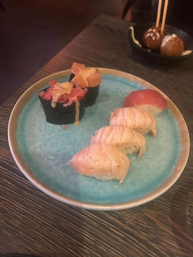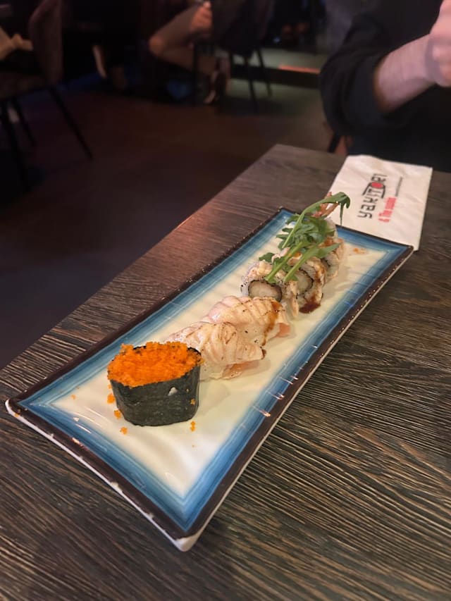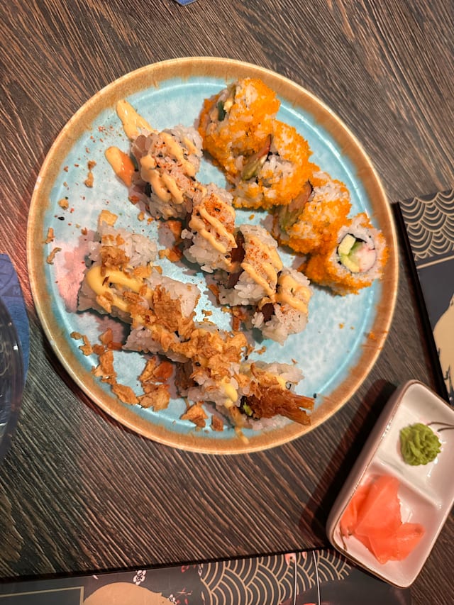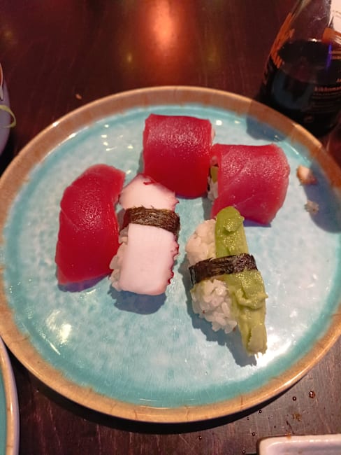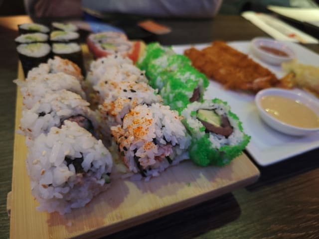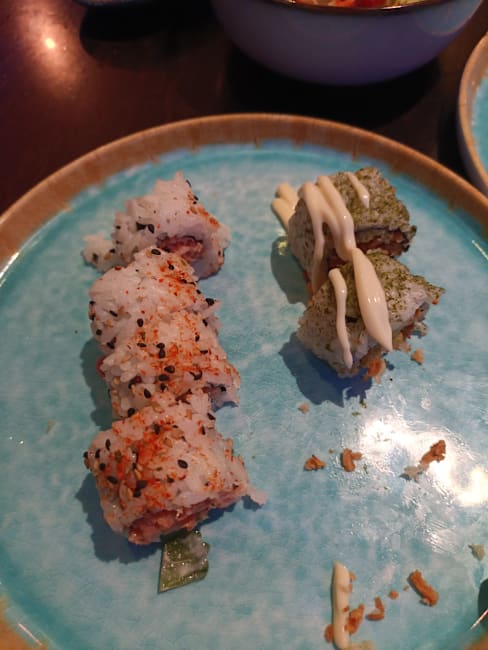 8.5/10Great value for all you can eat sushi. We had edamame, salmon and tuna nigiri, gyoza, California roll, crispy ebi roll, a handmade california roll and vegetable tempura. The tempura batter was good! Only the sauce with the tempura an gyoza not as malty as I like it, but still tasty. Service was fast and friendly with orders going through a tablet menu. You will need QR reader on your phone. Dessert variety is also included and has green tea ice cream. Lovely ambience to share a relaxing evening over lots of different bites!