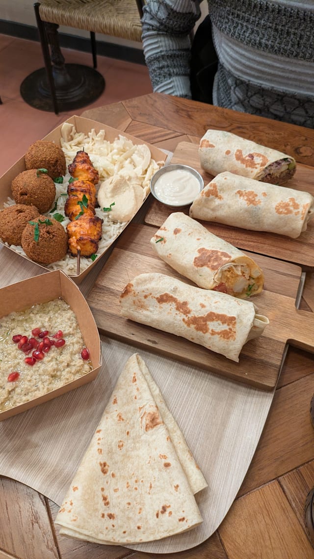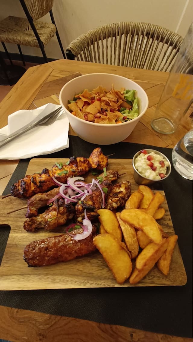 9/10never noticed this place before in all the 4 years we have lived here. while making a birthday dinner reservation for my husband on "the fork", the app recommended Yalla (for which i am grateful). i have always loved middle-eastern cuisine so decided to give it try tonight with some family members. i made my own box with lamb skewer and brisket and salad. the rice was nicely cooked, brisket was very good as it was tasty. lamb skewer was however was very bland - i am used to the lamb cooked by Chinese Uyghurs which is always loaded with spices such as cumin, and chili peppers. so this version was very bland for me. the drinks were good and the place is nicely decorated. the italian young man who served us was very sweet and nice. pls note, if you want to sit outside, your reservation has to specify that.