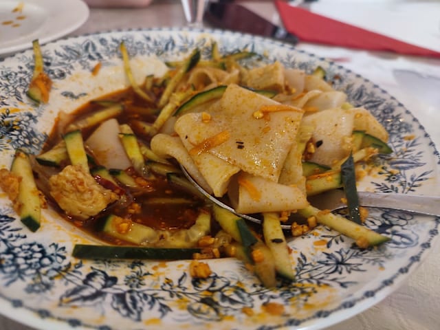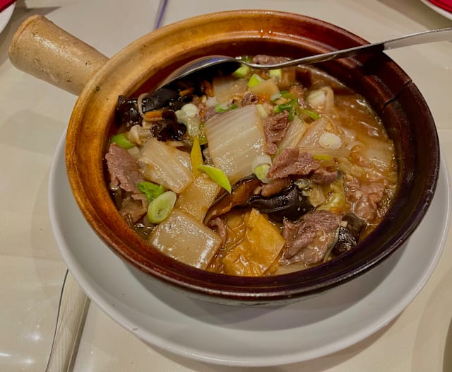 5.5/10+1The food doesn't match with the expectation and also its review on some platforms. First, food is not fresh enough even bad with obvious sour taste. Dry mushroom could be put in water not more than one day, but the mushroom we have is already sour, which means it has been put in water more than at least 2-3days. And as a restaurant, the food quality and even the food safety should be the most important thing. I am sorry this restaurant is not even qualified with it. We order one southern china style dish and one northern china style dish, which turns out to be the same seasoning and the same sauce. It's disappointing. The cold noodles is good, only thing recommended. Service is ok. Thanks for the orange served in the end. Not recommended with high expectations.