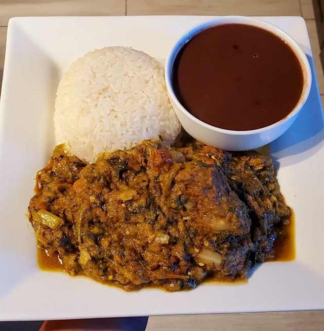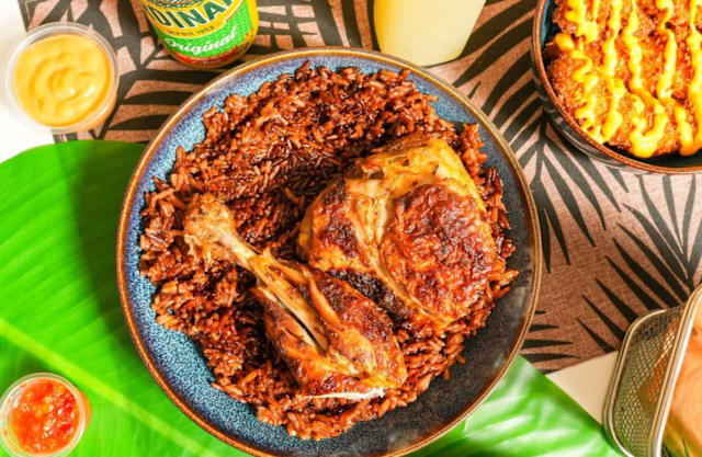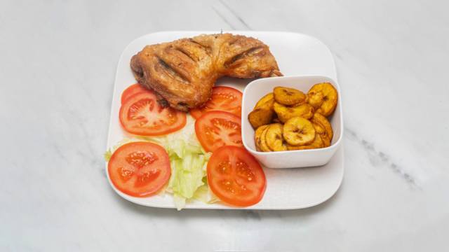 - Poulet + banane + salade + pikliz + riz djon dion ou riz aricot rouge