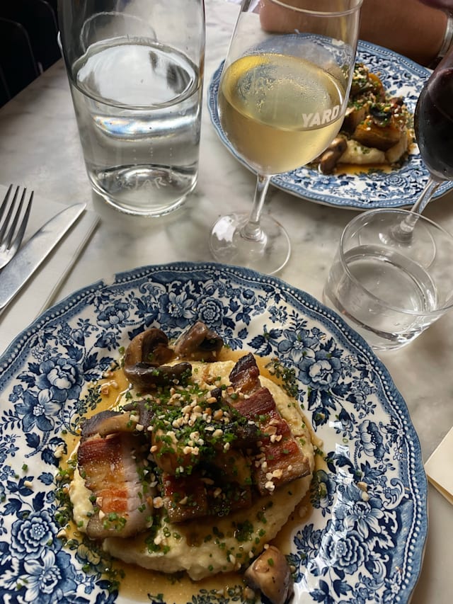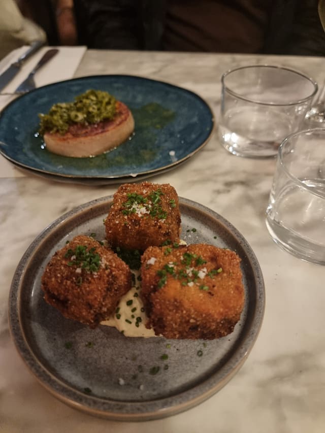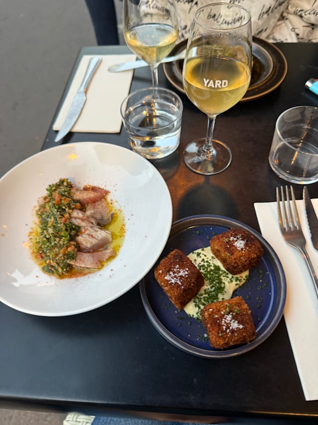 3/10Unprofessional. Wine in an not yet empty beer glass. Even after requesting no info on the wine. We were place inside, where it was hot, loud music, while we were waiting for a table outsiders, which were available, but not to us. There was no specifiek Bill, No communication. We were extremely disappointed as we had received good recommendations.