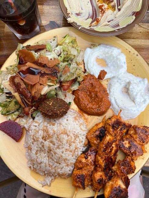9/10Quality food and generous portions. The kebab meat and fries were a bit dry, slightly underwhelming, however it combined well with the rest of the dish. The rice and sauces were amazing Good option to taste various flavours of Palestinian food. Polite staff, they brought free fresh water!