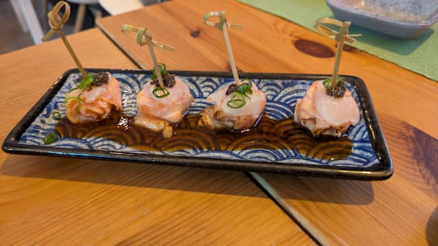 6.5/10The food was quite good but expensive, and it was served quickly. The staff were decent (one of them was quite welcoming, the other, which seemed to be a manager of some sort, not so much). However, I feel I was scammed! Lunch was over, we ordered a coffee, and one of the members of the staff asked if we weren't interested in an additional set of Gunkan pieces (one per person). The way the offer was phrased made it seem like some kind of special offer (because it came out of nowhere, unsolicited, and we made it clear that we didn't have much of an appetite anymore), so we went along with it. Turns out it was three pieces of Gunkan Poseidon, and although it was nice (not my favorite though, not even close), it was by far the most expensive sushi we got that day. This whole shenanigan felt dishonest to say the least. So, in the end... Those 3 pieces alone cost as much as 12 or 14 pieces of other types of the same size. Pieces that are just as good or better, keep in mind!