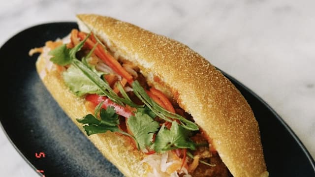 Char siu pork, pâté, pickled vegetables and chili mayo