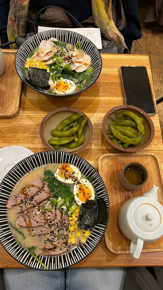 7.5/10Nice staff and it's cool to eat outside in the old town if a little cramped. Ramen is supposed to be a cheap comfort food (gyoza too). Yii aims for a fancy twist (gyoza sitting in sesame sauce, spinach leaves in the ramen) but you can't help but wonder if the ingredients are home made - is that bone broth that has boiled over 12 hours or is it from a packet? The sake - Kaori - is Japanese but produced only for export - it's fine but it's "table sake". So we ate the food but didn't get those comfort vibes - it didn't really hit the spot.