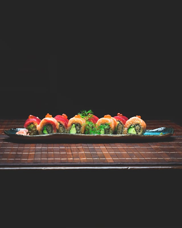 - Cuarenta y dos unidades. Maki de salmón 4, maki de atún 4, yoi maki 8, nigiri de salmón 2, nigiri de atún 2, nigiri de dorada 2, sashimi de salmón 4, sashimi de atún 4, sashimi de hamachi 4, sashimi de dorada 4, sashimi de otoro 4.